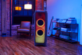 LED رقص نور با قابلیت تنظیم با ریتم موسیقی در تمام پنل جلویی اسپیکر، دستبند Air Gesture با LED هماهنگ با اسپیکر، قابلیت تغییر افکت صدا و رقص نور توسط دستبند