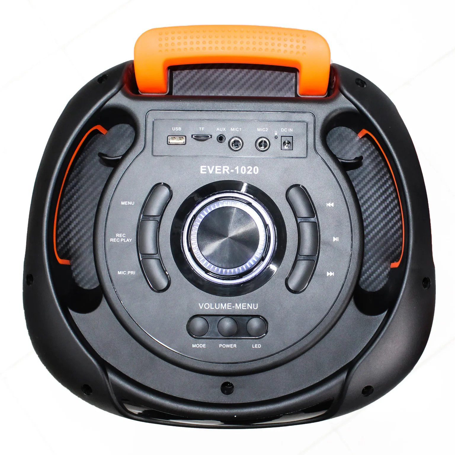 اسپیکر 1020 یک اسپیکر بسیار زیبا از نظر طراحی بهمراه کیفیت ساخت بالا از شرکت اور میباشد. .این اسپیکر از نظر امکانات و کارایی کامل میباشد و هم فلش میخورد و بلوتوث و ایوایکس و میکروفون و ... در جلو اسپیکر یک پنل تمام ال ای دی قرار دارد که جلوه های محتلف نوری ایجاد میکند که در شب نمای بسیار زیبایی دارد . سایز باند های اسپیکر 12 اینچ میباشد که میتواند جوابگو جشن های 40-50 نفر را باشد . در بالای اسپیکر یک پنل حرفه ای برای تنظیمات صدا و نور اسپیکر قرار دارد . این اسپیکر هم امکان استفاده با برق شهری و هم امکان استفاده از شارژ را داراست که استفاده از شارژ دستگاه دوام باتری ان را افزایش میدهد. این دستگاه به دلیل داشتن باتری بزرگ 9 که با آدابتور شارژ میشود و بابرق قابل استفادست